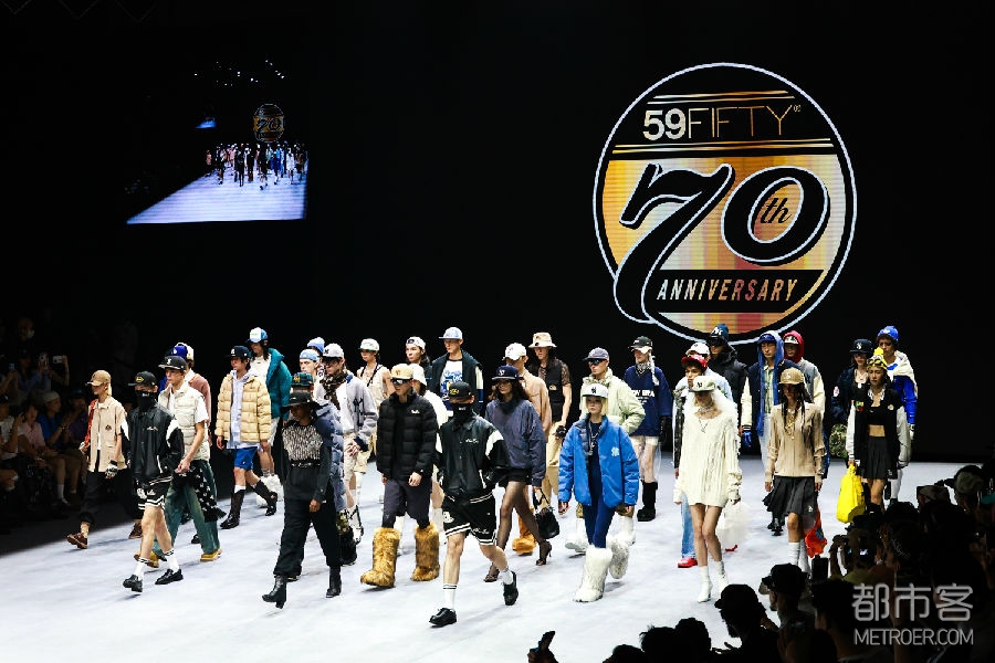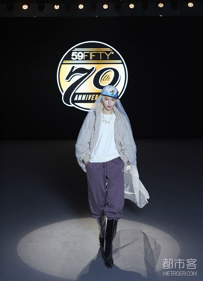 除了秀场上的精彩演绎,大秀现场的互动环节同样精彩纷呈。刘雨昕将手工改造的帽款复刻于大型帽子的艺术装置上,为59FIFTY 70周年留存珍贵记忆;