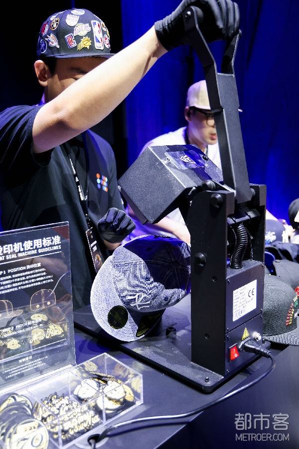 而在帽子DIY体验区,则是提供了多种风格的贴布装饰选择,CapHead可以将心仪的贴布烫印在帽子上面,制作出专属于自己的帽款。