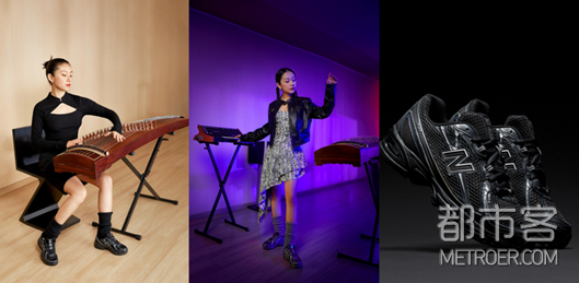 在传统与先锋的碰撞中,古筝演奏者兼独立电子唱作人——Diner用旋律塑造独特表达,白天她以弦音展示传统音乐的韵律之美,夜晚她将古典音乐与电子音乐巧妙融合,打造专属音乐风格。740系列“朋克黑”鞋款衬托了她的锋芒与张力,如同她的旋律般充满突破与力量,每一个音符与每一段编曲,都传达了她的先锋态度。