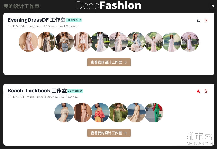 DF(DeepFashion) 了解设计师的需求,将繁杂的 AI 设计师训练,简化成4个步骤,只需要点点鼠标就可以完成。仅需要 5 张设计师或者品牌自身的设计稿,10分钟,DeepFashion 就可以将这5张设计稿训练成一个设计师或者品牌专属的 AI 设计师,推荐使用最新的设计稿,让自己的 AI 设计师始终跑在时尚的最前沿。每 5 秒(此为 A100 (80GB)计算速度),AI 设计师就可以生成一张创意设计稿,而设计师自己,则作为人类提供最终的审美和决策。通过不断的筛选,二次训练,AI 设计师会越来越了解需求,AI 的加速设计迭代,更加减少环境影响,与日益增长的行业对可持续、生态意识战略的需求相得益彰。 这种高效性不仅迎合时尚的快节奏,也将 DeepFashion 定位为创新迅速且可持续设计突破的推动者。