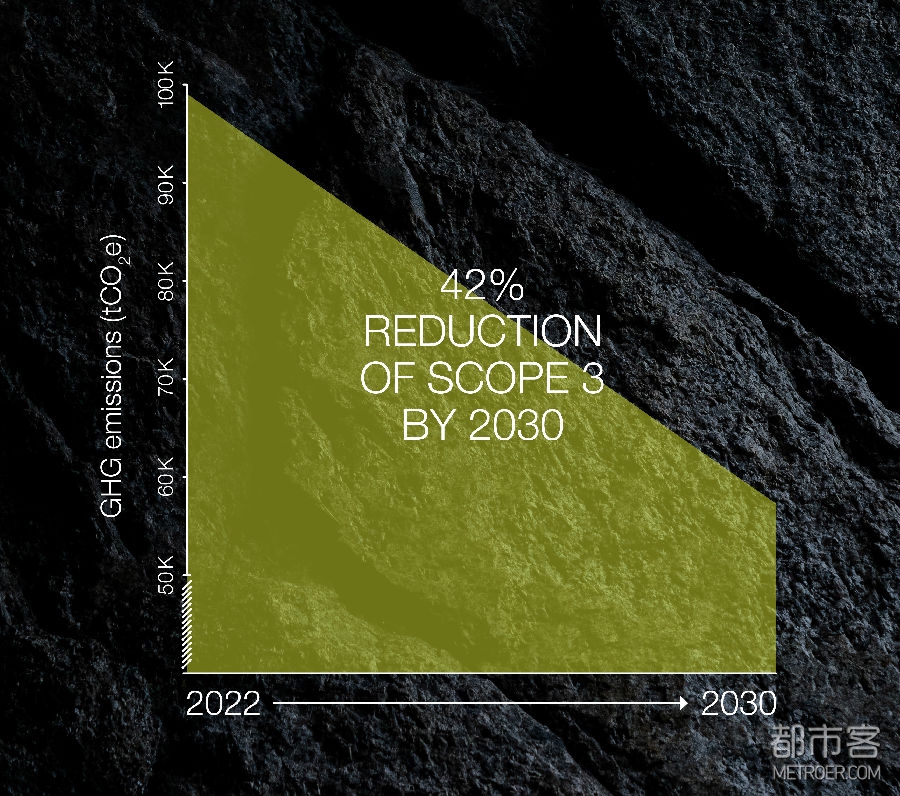 到2030年,始祖鸟在2022年的基准上,减少90%的范围一和范围二排放量,以及42%的范围三排放量