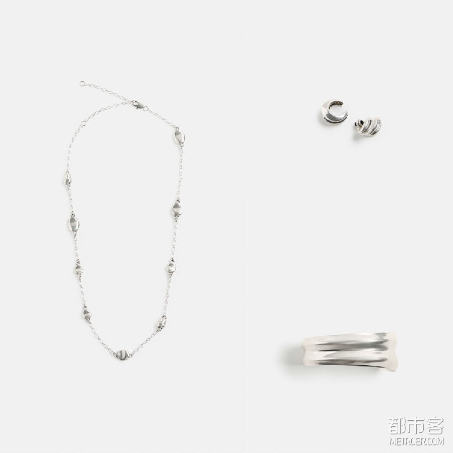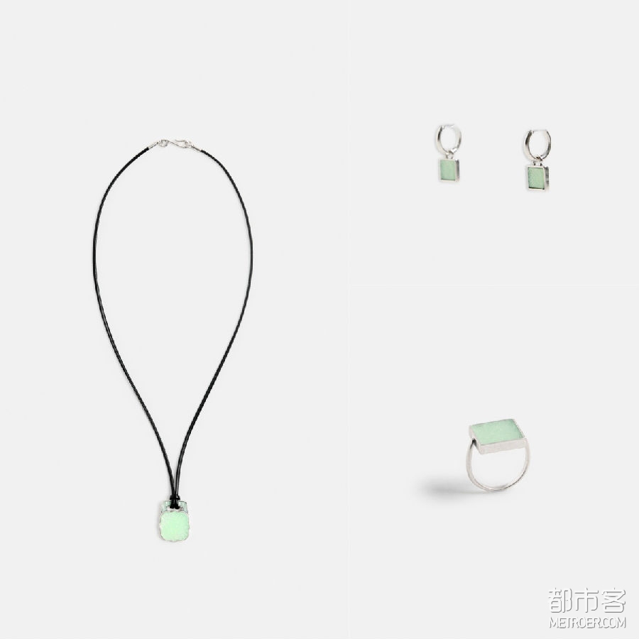 珠宝:桑多尔的珠宝收藏本身就极具吸引力,同时也是连接这一开创性合作中的男装和家居用品的审美驿站。设计师对有机形态的迷恋以及对传统回忆的致敬体现在一系列带有包豪斯风格的银色镀金属饰物上,以及另一系列产品——将绿色树脂镶嵌在更多银色镀金属中,有时还刻有源自匈牙利和东欧传统的花卉和其他图案。这些精心制作的珠宝包括戒指、耳环、耳环夹和项链。
