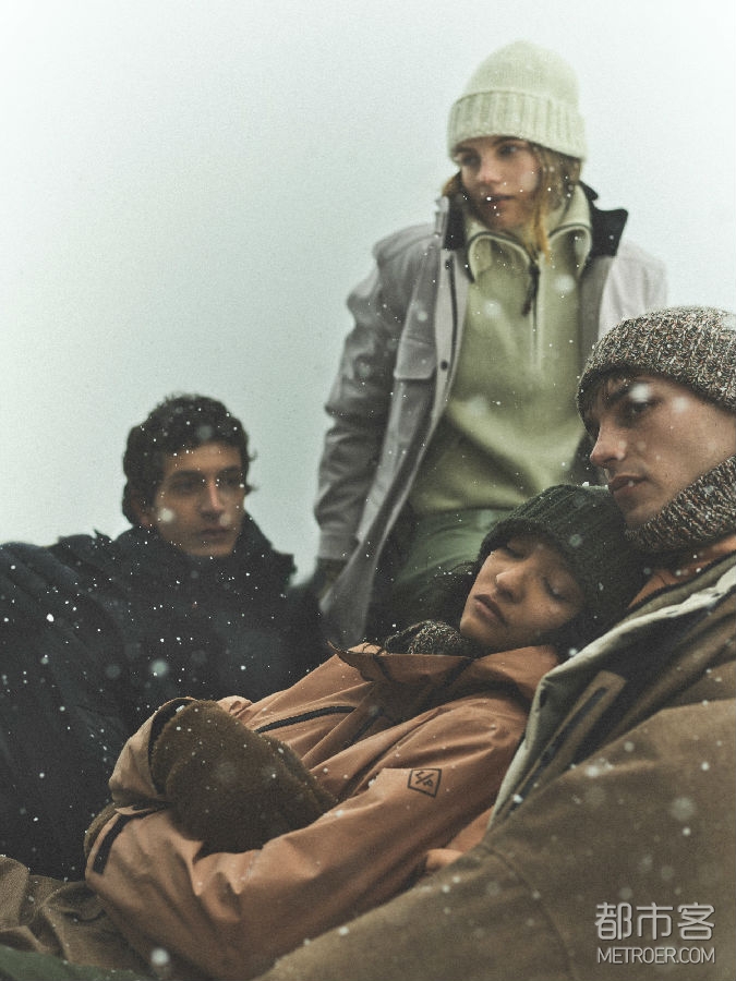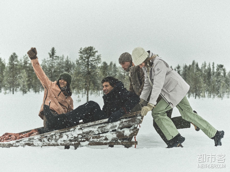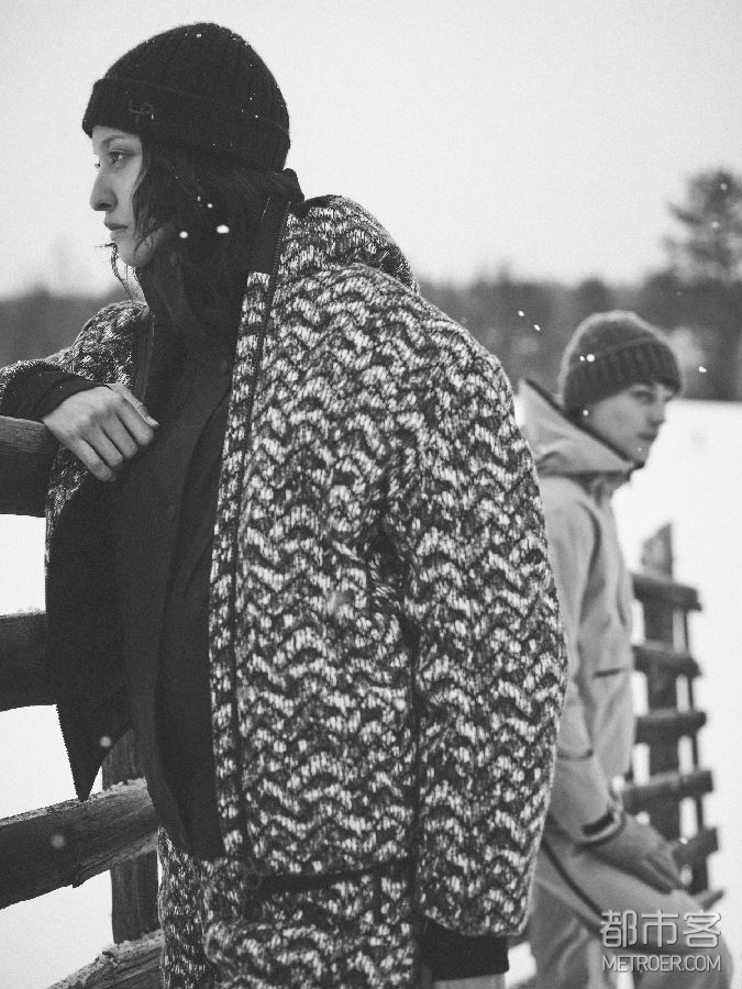 Ski 胶囊系列中,百搭的中性叠穿造型包含许多亮眼元素,如滑雪版的 Nuptse 半开襟套头夹克和 Traveller 夹克,均以三层 Bristol 科技面料重新演绎,该面料是由 Loro Piana 研发的一种创新型防泼水及防风面料,经 Clima System® 技术处理,具有良好的热调节性能。本系列其他创新型高科技单品包括采用 Wool Cash Melange Clima System® 面料的 Adelboden 款上下装,以及由真丝、羊绒和初剪羊毛混纺而成,采用微型提花针法,表面呈现出锯齿状像素效果和冷灰色调的 Lavazei 款上下装。滑雪衣橱中还有 Nanga 滑雪服套装、Bansko 背带裤,以及羊绒和 Cashfur 针织品,采用迷迭香色、鼠尾草色、棕色和带沙色点缀的黑色。