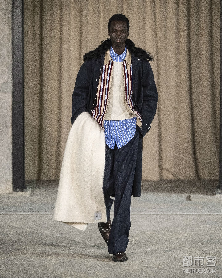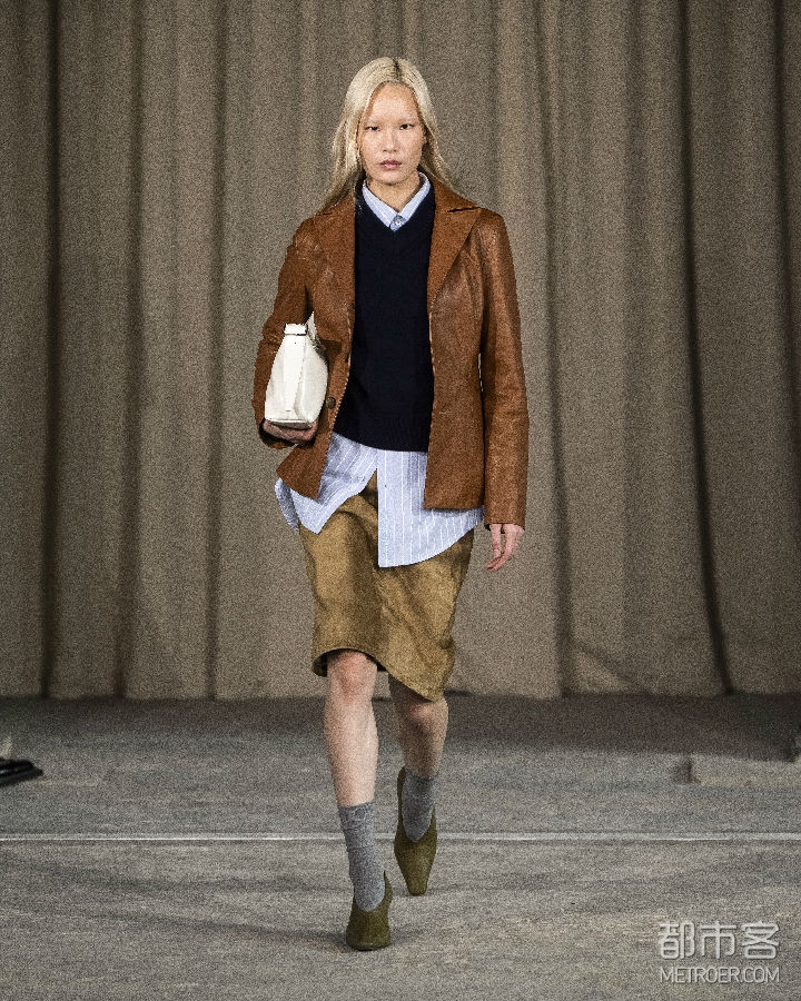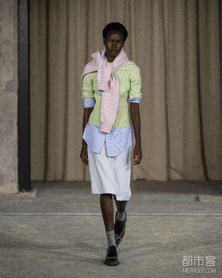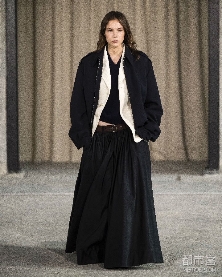系列以当代视角重塑英伦衣橱的经典元素,摒弃刻板印象,拥抱多元时尚理念。考究的裁剪大衣与低腰晚装裙的搭配,仿佛在剑桥仲夏舞会的晨曦中留下优雅剪影;廓形利落的外套与休闲羊毛衫的结合,展现都市女性从容优雅的生活态度。每一件作品都以创新层次感打破常规,成就独特的对比美学表达。
