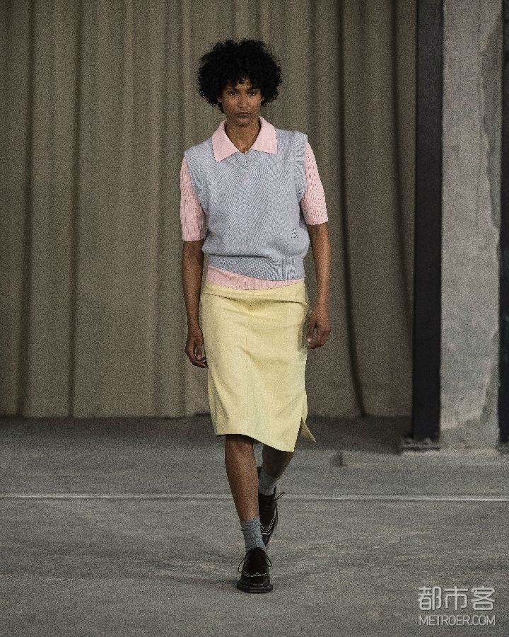 MITHRIDATE 2025秋冬系列,以八十年代与千禧年代为灵感,系列尝试探讨和重新审视两个时代的文化遗产与影响力,借此诠释了对“通俗趣味”的全新独特见解。通过色彩搭配将其观点充分呈现:柔和色调与经典学院派色彩巧妙碰撞,传递复古与现代的和谐共鸣。摇滚风格的印花元素中注入叛逆精神,与经典的风衣和牛津衬衫相映成趣,共谱英伦风范。