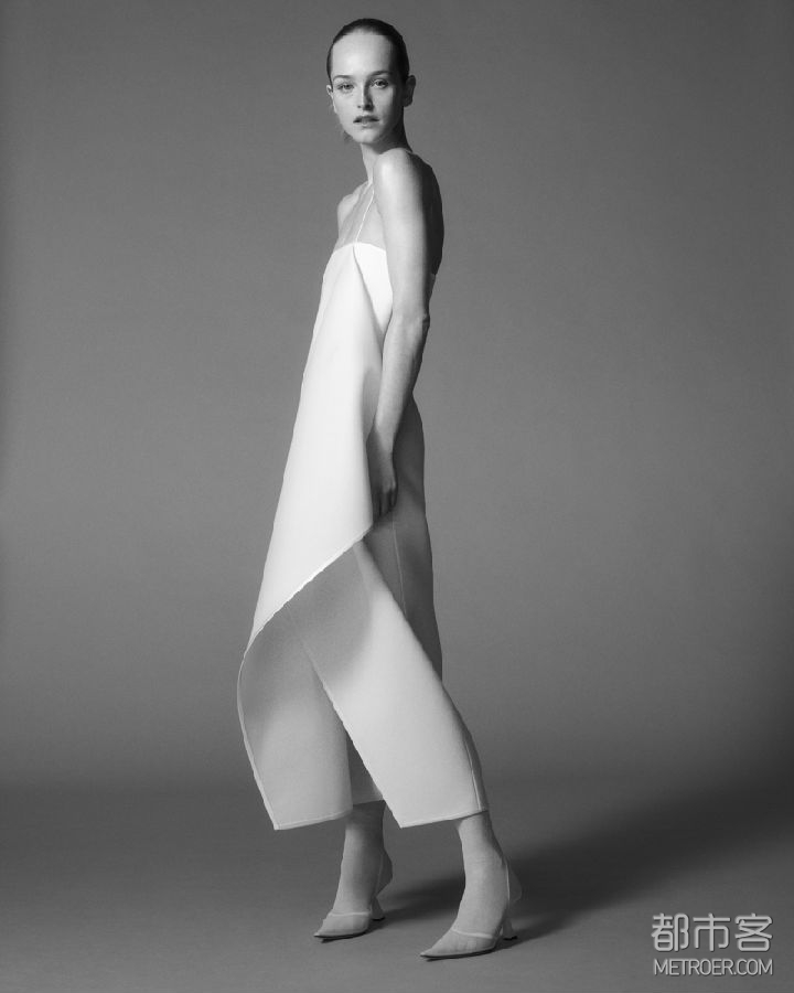 GIADA本季秀款延续了品牌一贯的纯粹线条与流畅轮廓,构建出精致的空间结构。女性形体被轻盈如薄纱的服饰温柔包裹,奢华面料以不对称剪裁呈现,唤起一种流动与转变的动感,线条流畅而修长,优雅而感性。全新的廓形以精准的工艺呈现:大衣与衬衫结构宽松,而贴合身形的连衣裙则通过不对称设计和透明欧根纱隐约露出肩部、背部或腿部,微妙而诱人,强调性感的同时创造出动态的平衡。创意总监Gabriele Colangelo曾在第二届米兰迦达学苑(GIADA Academy)中表示:“对我来说,坚强的个性意味着饱满的自信,而自信总是与温柔相伴。坚强与温柔,正是我想用来形容我们为之设计的女性特质的词汇。”因此,他的设计始终传递着“岩石上的花”的品牌精神,展现了女性坚韧与柔美的完美融合。