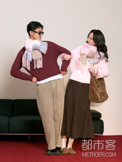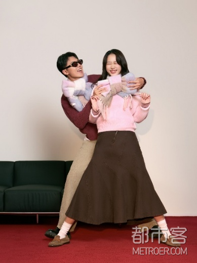 木马的弧度是记忆的切线,传声筒两端系着未曾长大的对白。博主@吴佳烨 与爱人@任中龙Leno 并肩而坐——谁说成年人必须告别童真?MAX&Co. 宽松的针织与细腻亲肤的纱线,为TA保留了一处心灵自留地。午马之年,“绳结”赋予爱人力量,使TA既能在职场运筹帷幄,也能在旋转木马上开怀大笑。