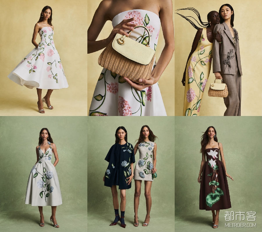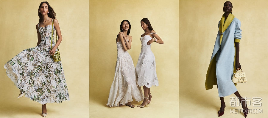受Chiné织造技法启发的仙客来印花,为丝线刺绣牛仔连衣裙、印花缎面睡衣套装以及渐变提花夹克注入层次丰富的动感。整体配色延续春日语境,黄油黄、天蓝与梨绿色贯穿系列之中。