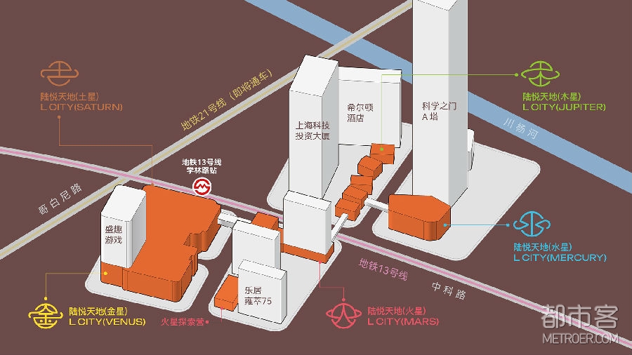 开业仪式上,五个星球升腾而起,宣告着陆悦天地土星、金星、水星、木星和火星五大地块商业体全面开业。