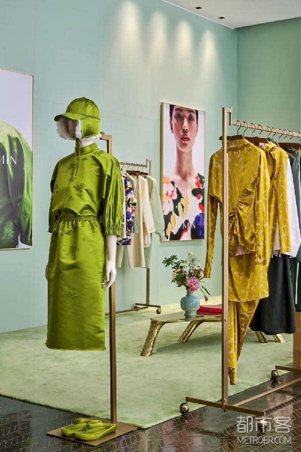 26年新春系列,是Ms MIN始于自我的一场焕新,如同嫩芽冒新,从过去的沃土中萌发出新的精气神。延续到空间设计上,呈现出一种具有突破性的“新绿”色彩,呼应着系列服装中的葱绿、桃枝和花叶,繁茂生机如春潮,扑面而来。