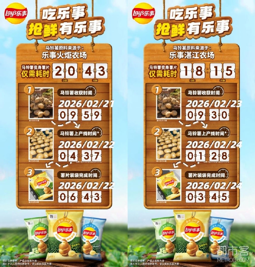 独特的是,与常规产品全年供应的模式不同,乐事春收马铃薯片坚持“春季限时供应”。这种自带时间紧迫感的“错过等一年”机制,进一步丰富了产品体验维度,强化消费者的即时购买意愿的同时,将有效赋能渠道等行业伙伴提升动销。