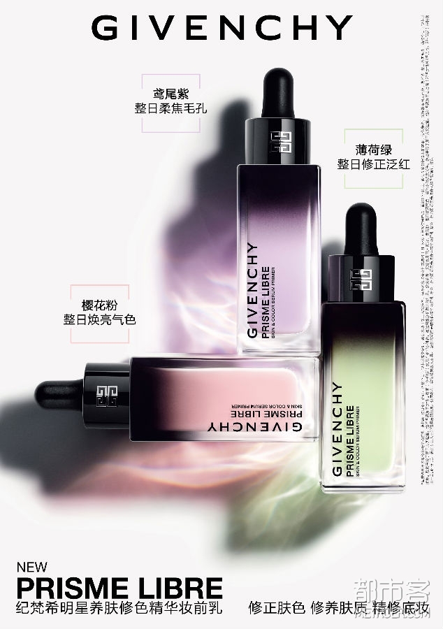 全新纪梵希明星养肤修色精华妆前乳搭载前沿色修科技,蕴含活性精粹,予肌肤外修内养,焕亮原生光泽感。三款色号满足不同需求:鸢尾紫细腻修黄,薄荷绿舒缓修红,樱花粉提亮整体气色,如高定工艺般量肤裁妆,为妆前步序奠定基础。