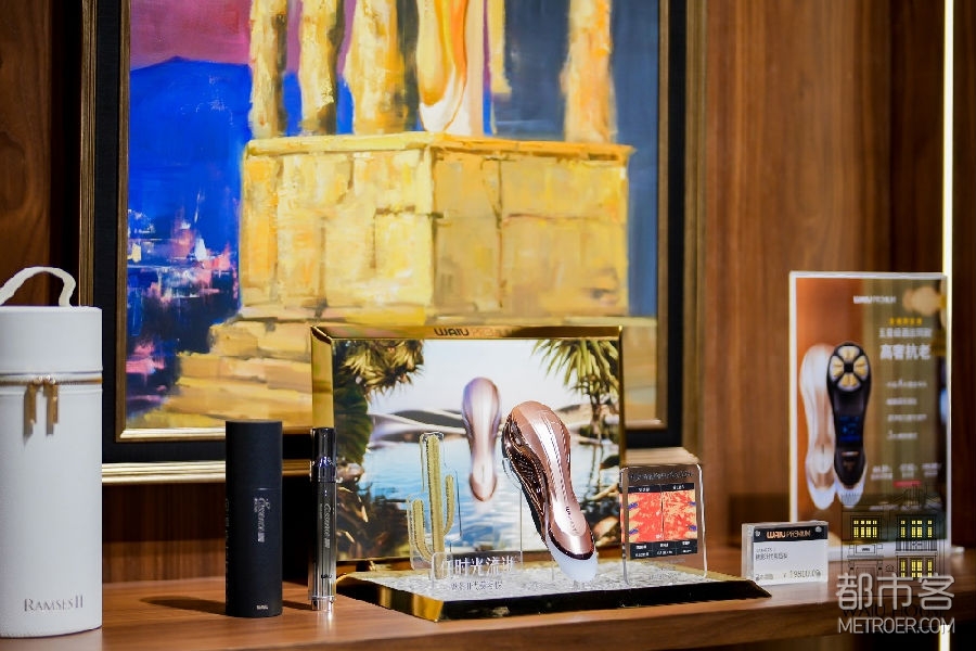 前厅空间陈列着 WAiU 历代代表性美容仪作品。从造型演进、材质升级,到能量等级与护理理念的持续突破,每一代产品都对应着品牌在不同阶段的技术创新,也见证着品牌与用户共同走过的肌肤时光。这不仅是一条产品发展的时间轴,更是一种长期主义的直观呈现。