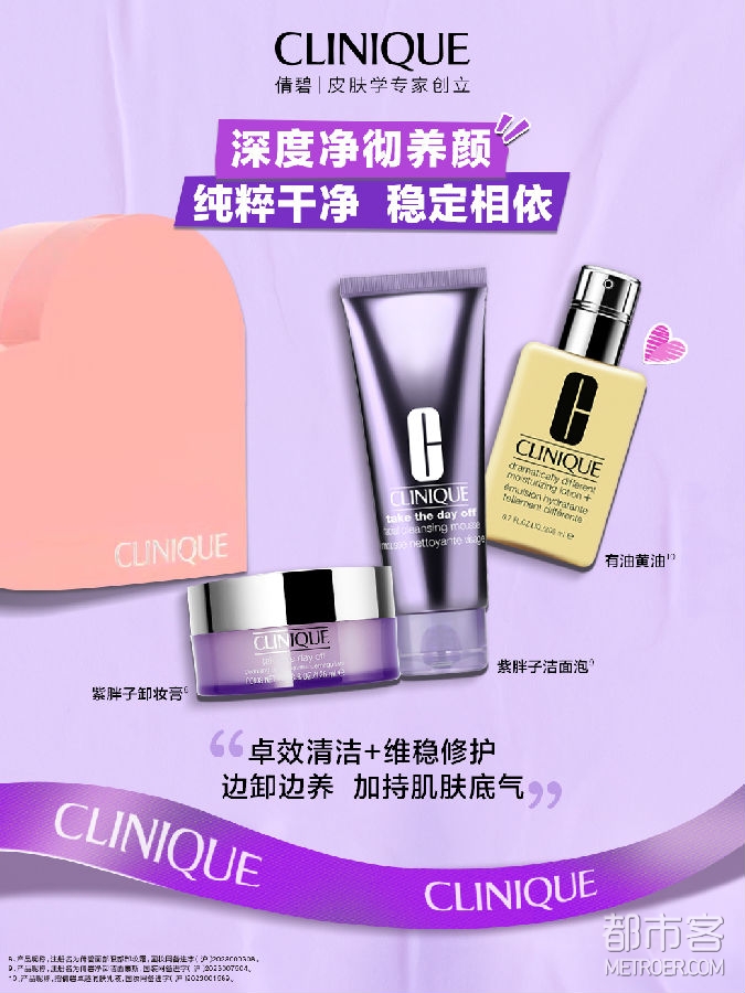CLINIQUE倩碧「星」辰净澈礼盒心意满载倩碧紫胖子卸妆膏、紫胖子洁面泡和天才黄油,以纯粹爱意守护光彩背后的洁净养肤,让肌肤在日常也闪烁熠熠星光。