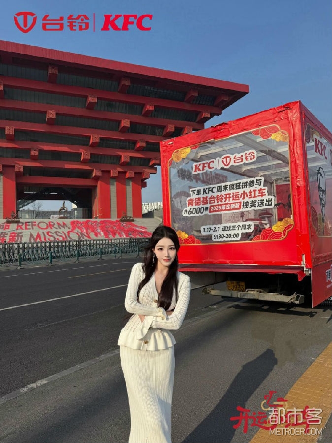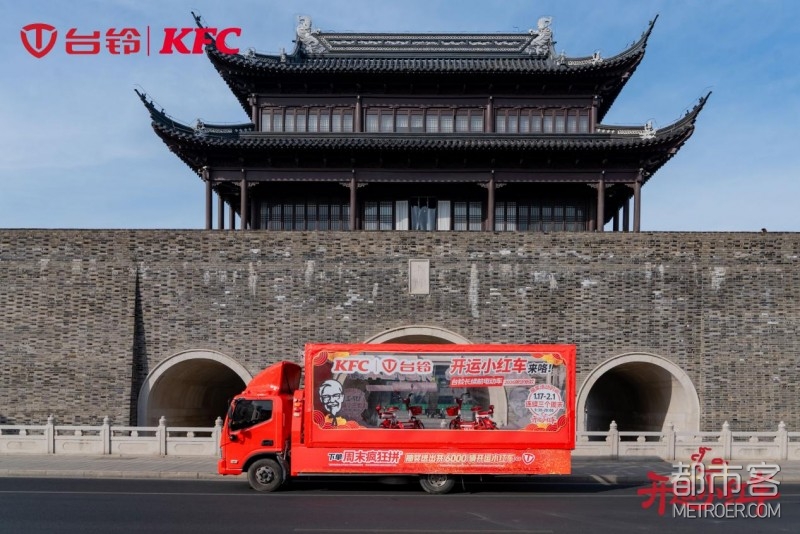台铃肯德基联名开运小红车以醒目的红白配色为主调,巧妙融合了经典品牌设计元素,成为街头流动的潮流ICON。透明运货车则变身移动好运展馆,载着开运小红车先后闪现上海、苏州等城市街头。这抹满载惊喜与期待的亮眼红色,如同行走的好运信号,从源头一路驶向每位用户的日常。